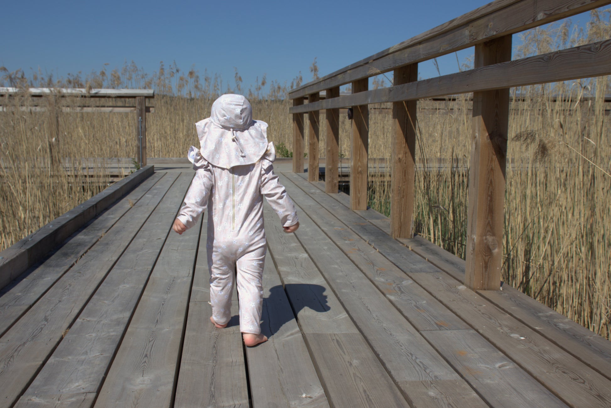 Heltäckande baddräkt med integrerat UV-skydd. Observera att UV-skydd endast gäller hud som täcks av plagget. Se till att applicera solskyddsfaktor på hela barnets kropp.
