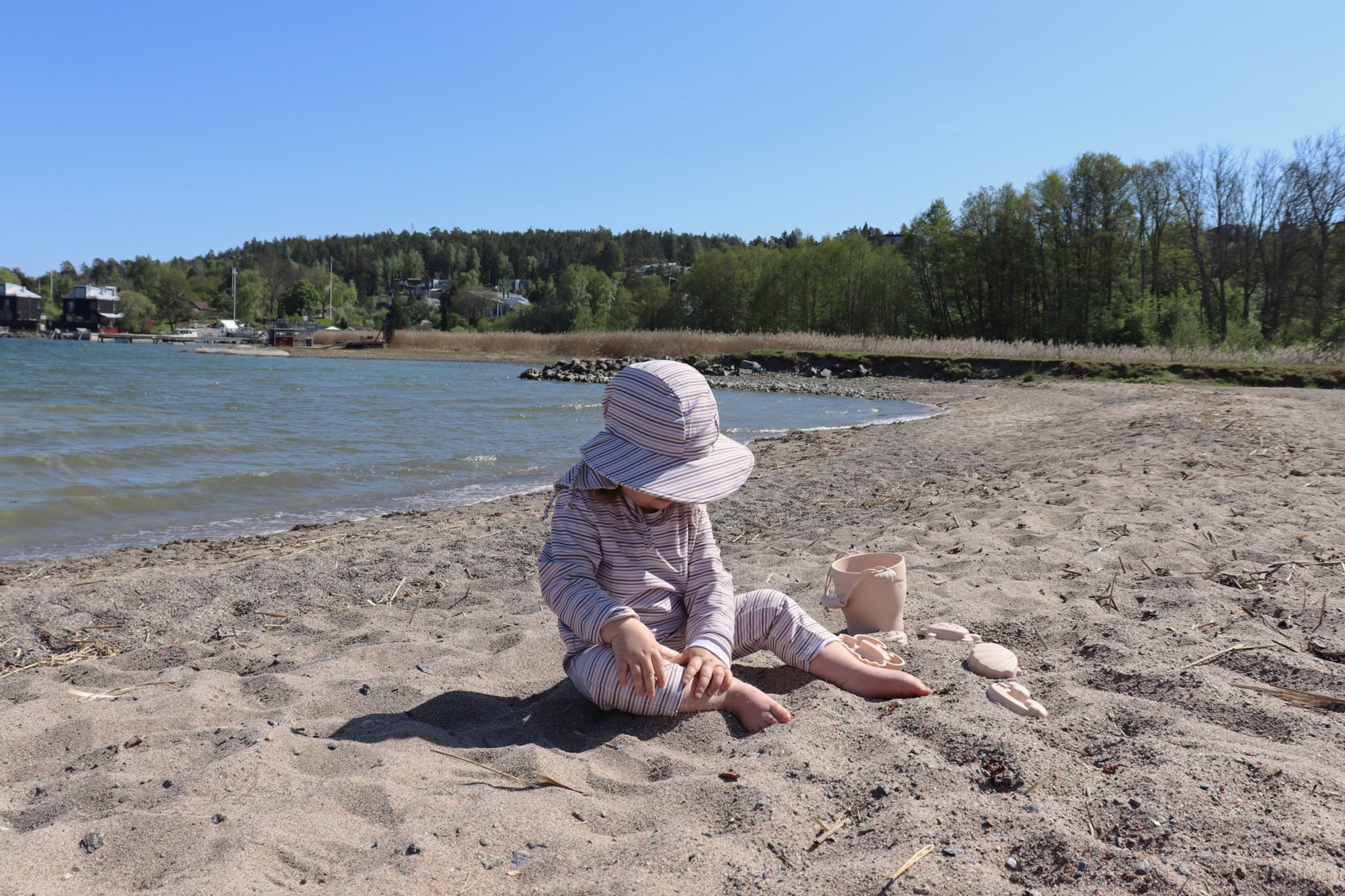Heltäckande baddräkt med integrerat UV-skydd. Observera att UV-skydd endast gäller hud som täcks av plagget. Se till att applicera solskyddsfaktor på hela barnets kropp.